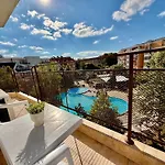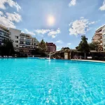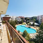 Das Two-Bed Flat In Sunny Beach With Pool View mit Blick auf den Garten besteht aus einem Patio, einem Balkon und einem Ankleidebereich mit einer Klimaanlage. Im Apartment gibt es 2 Bäder. Außerdem gibt es hier eine getrennte Toilette und eine Dusche.